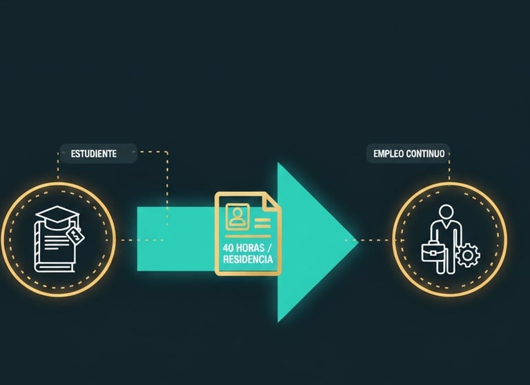 Gestionamos el cambio de estatus de los empleados extranjeros con permiso de estudiante a residencia con autorización de trabajo de 40 horas semanales, permitiendo su continuidad laboral sin interrupciones.